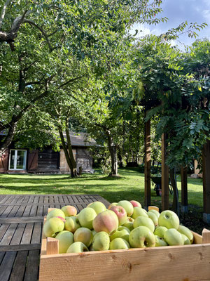Wir ernten die Pfirsiche und Äpfel, kochen Sie ein oder lagern Sie für lange Wintertage, genießen die letzten Sonnenstrahlen und freuen uns auf das Lehdefest am letzten Septemberwochenende.